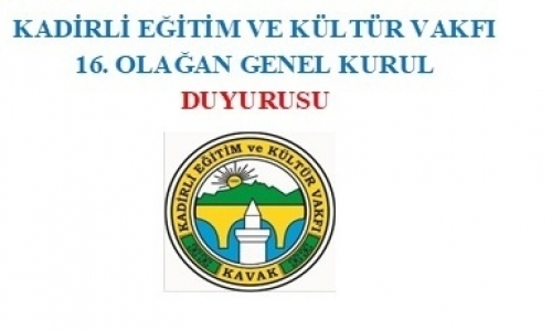 KADİRLİ EĞİTİM VE KÜLTÜR VAKFI 16. OLAĞAN GENEL KURUL TOPLANTISI Vakfımızın 16. Olağan Genel Kurul toplantısı 12 Nisan 2025..